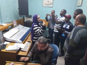 واصطحبت “الشافعي” الدارسين في جولة باستديوهات الإذاعة المختلفة بدأتها باستديوهات الإذاعات الموجهة ثم إذاعة البرنامج الأوروبي واستديوهات الدراما ووحدة التحكم المركزية التي تعمل كحلقة وصل بين المحطة الإذاعية ومحطة الإرسال .