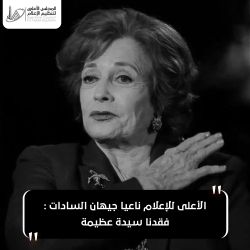 ينعي المجلس الأعلى لتنظيم الإعلام برئاسة الكاتب الصحفي كرم جبر، ببالغ الحزن والأسى، السيدة جيهان السادات، قرينة الرئيس الراحل محمد أنور السادات.