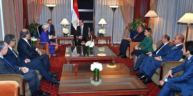 أكد الرئيس عبد الفتاح السيسي مواصلة تنفيذ برنامج الإصلاح الاقتصادي، مشيداً بتفهم الشعب المصري للإجراءات الاقتصادية، إيماناً منه بضرورة التعامل الفعال مع المشكلات الاقتصادية على نحو حاسم بهدف تحقيق نهضة تنموية حقيقية يلمس عوائدها جميع المواطنين. جاء ذلك خلال استقبال الرئيس السيسي بمقر إقامته بنيويورك، المديرة التنفيذية لصندوق النقد الدولي كريستين لاجارد، بحضور وزير الخارجية “سامح شكري”، ووزيرة الاستثمار والتعاون الدولي “سحر نصر”، ووزير التجارة والصناعة المهندس “عمرو نصار”. وصرح المتحدث الرسمي باسم رئاسة الجمهورية السفير “بسام راضي” بأن الرئيس السيسي أعرب – خلال اللقاء – عن التقدير للتعاون البناء بين الحكومة وصندوق النقد الدولي في إطار تنفيذ برنامج الإصلاح الاقتصادي، مؤكداً حرص مصر على استمرار التعاون مع الصندوق.