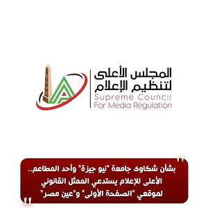 بشأن شكاوى جامعة “نيو جيزة” وأحد المطاعم.. الأعلى للإعلام يستدعي الممثل القانوني لموقعي “الصفحة الأولى” و”عين مصر”