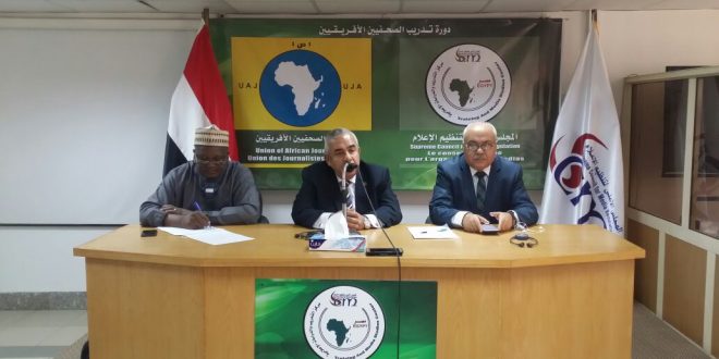 في أولى أيام البرنامج التدريبي لاتحاد الصحفيين الأفارقة بدورة الأعلى للإعلام