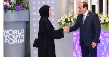 نشرت “شما بنت سهيل المزروعي” وزيرة دولة الإمارات لشؤون الشباب صورة لها وهي تصافح الرئيس “عبد الفتاح السيسي” رئيس الجمهورية بمنتدى شباب العالم المقام حالياً بمدينة شرم الشيخ .