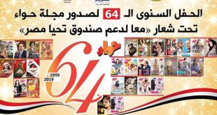 تحت شعار معا لدعم صندوق تحيا مصر، تحتفل مجلة حواء بالعيد ال٦٤ لصدورها مساء الأحد المقبل ١٣ يناير بالمسرح الرئيسي بوزارة الشباب والرياضة، يقام الحفل بالتعاون مع وزارة الشباب والرياضة وأمانة حزب مستقبل وطن بالجيزة ” أمانة المراة _أكتوبر وزايد”وكتلة ستات وشباب أد التحدي برئاسة النائبة مايسة عطوة. يتضمن الحفل …