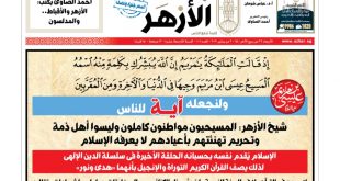 خصصت صحيفة «صوت الأزهر»، التي تصدرها مؤسسة الأزهر، عددها الأخير للمشاركة في احتفالات الأقباط بعيد الميلاد. وأشارت في واحد من عناوينها الرئيسية على الصفحة الأولى إلى دور الأزهر في تجديد الخطاب الديني، وفتوى شيخ الأزهر التي تؤكد أن «تحريم تهنئة الأقباط بأعيادهم ليس من الإسلام». وفي لقاء مع «الشرق الأوسط»، …