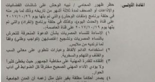 أعلن المجلس الأعلى لتنظيم الإعلام، برئاسة الكاتب الصحفي مكرم محمد أحمد، منع ظهور المحامي “نبيه الوحش” على شاشات الفضائيات و الإذاعات او الصحف لمدة ثلاثة أشهر؛ بناءً على القرار رقم 28 لسنة 2017 والذى صدر اليوم السبت الموافق الخامس والعشرون من نوفمبر وذلك لما بدر منه خلال إحدى حلقات برنامج …